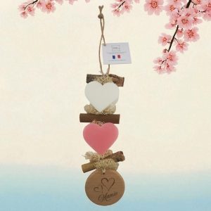 Tresse 1 Cœur Bergamote 1 Cœur Rose 1 Rond bois gravé « Mamie »