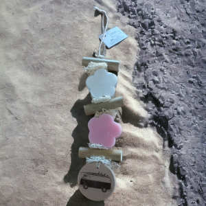 Tresse 1 savon fleur bergamote 1 fleur écume avec médaillon en bois flocon simple