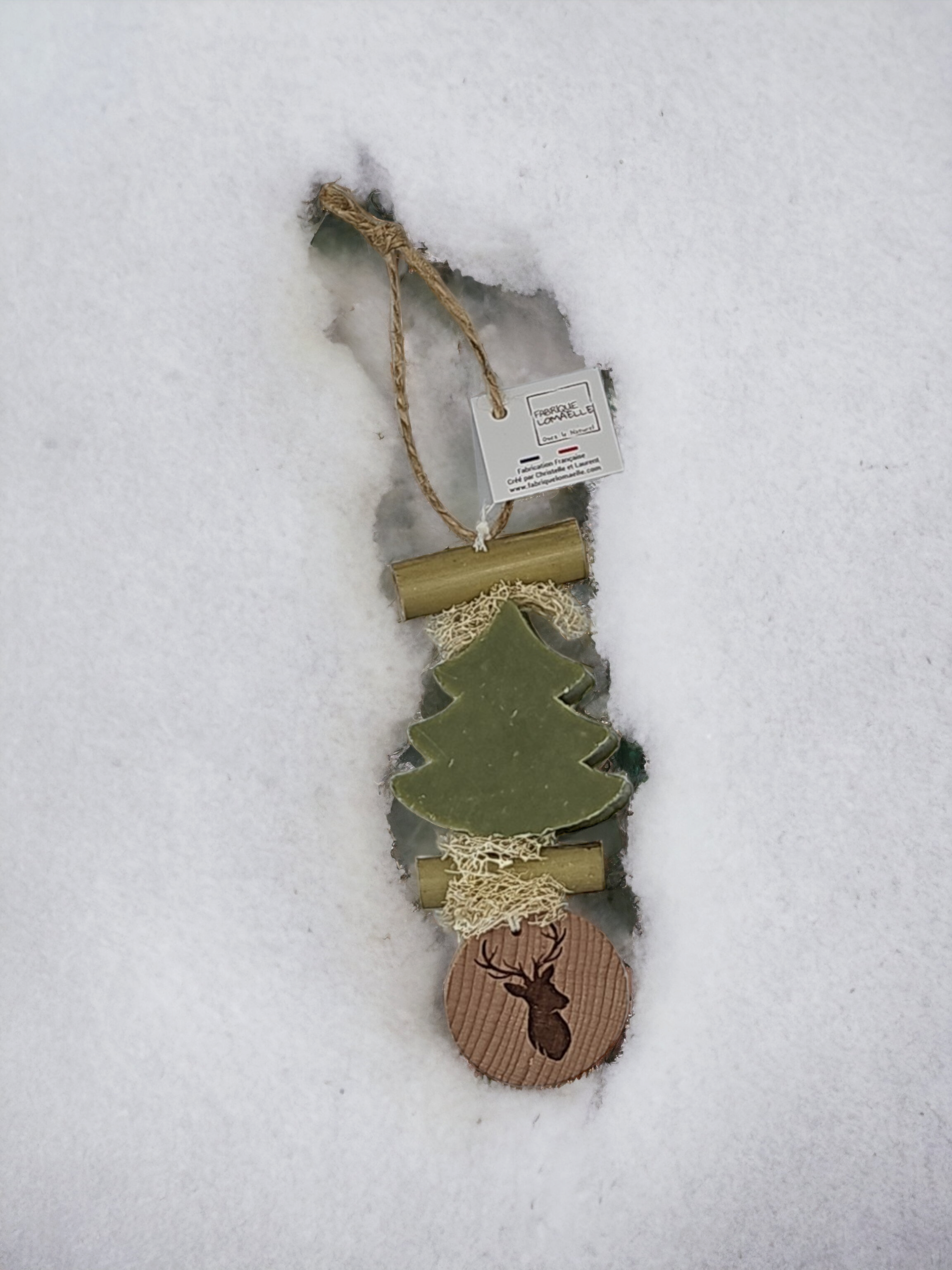 Tresse 1 savon sapin vert avec médaillon en bois tête de cerf